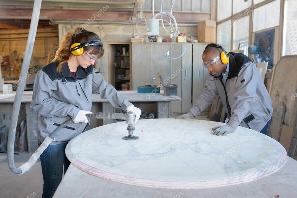 Det är en våtslipning som gäller, och det är saftiga maskiner som använd.